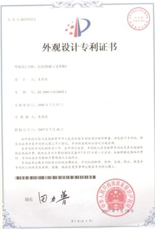 編織袋米粉外觀設計專利證書