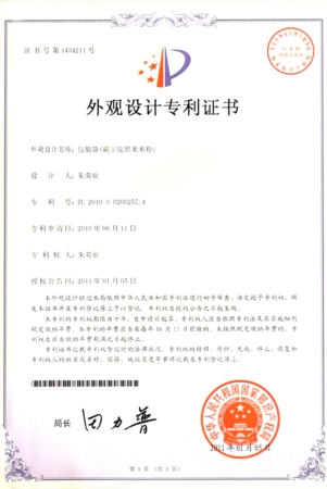 400克黑米米排粉包裝袋外觀設計專利證書
