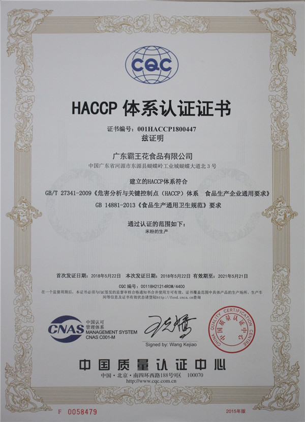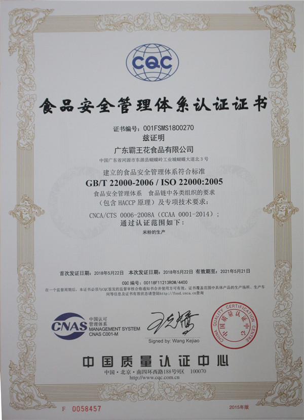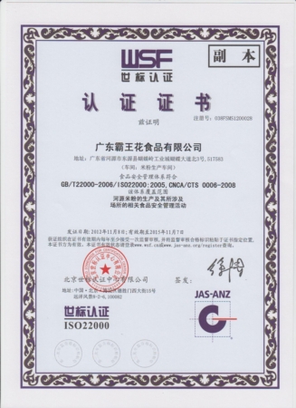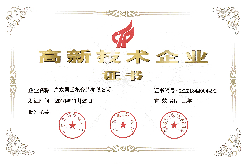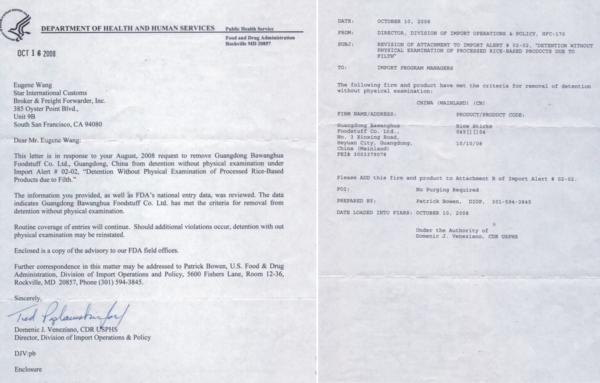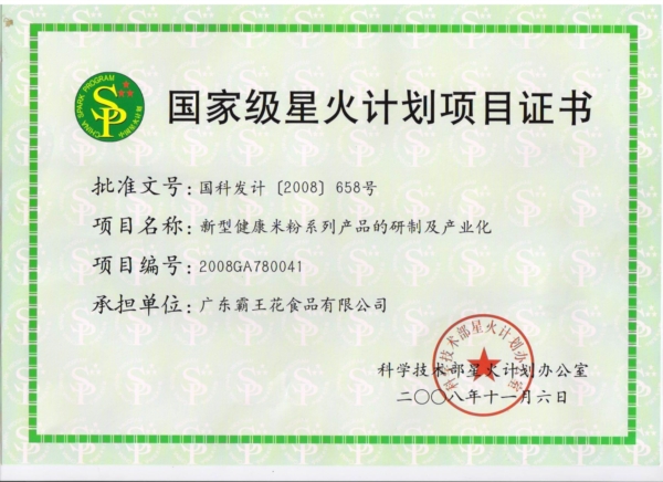 2008年獲得了美國食品及藥物管理局發放的免檢文件,廣東霸王花食品公司的“加工米制產品”符合美國進口免檢的標準。
