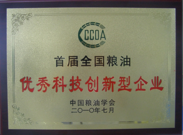 首屆全國糧油優秀科技創新型企業稱號