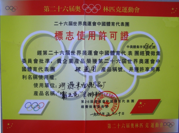 第二十屆世界奧運會中國體育代表團標志使用許可證