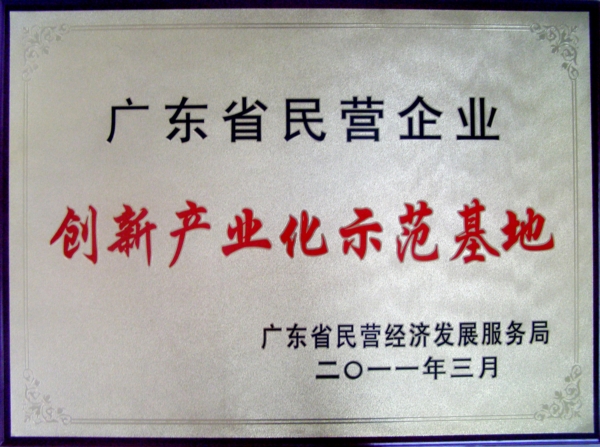 廣東省民營企業創新產業化示范基地牌匾