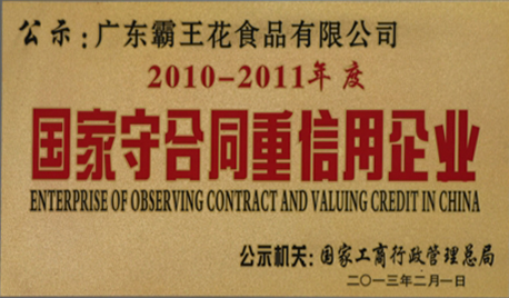 由國家工商行政管理局授予的年度國家守合同重信用企業。