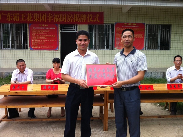 5月14日上午10時,我司副總經(jīng)理鐘遠(yuǎn)愛與團(tuán)河源市委和團(tuán)東源縣委的有關(guān)領(lǐng)導(dǎo)一同到東源縣彰溪鎮(zhèn)畬族鄉(xiāng)實(shí)驗(yàn)小學(xué)參加廣東霸王花集團(tuán)“幸福廚房”揭牌啟用儀式。在儀式上,畬族鄉(xiāng)實(shí)驗(yàn)小學(xué)校長對我們集團(tuán)的善舉致辭感謝并向我們集團(tuán)贈送了“情系山區(qū)教育 關(guān)愛兒童成長”的牌匾。