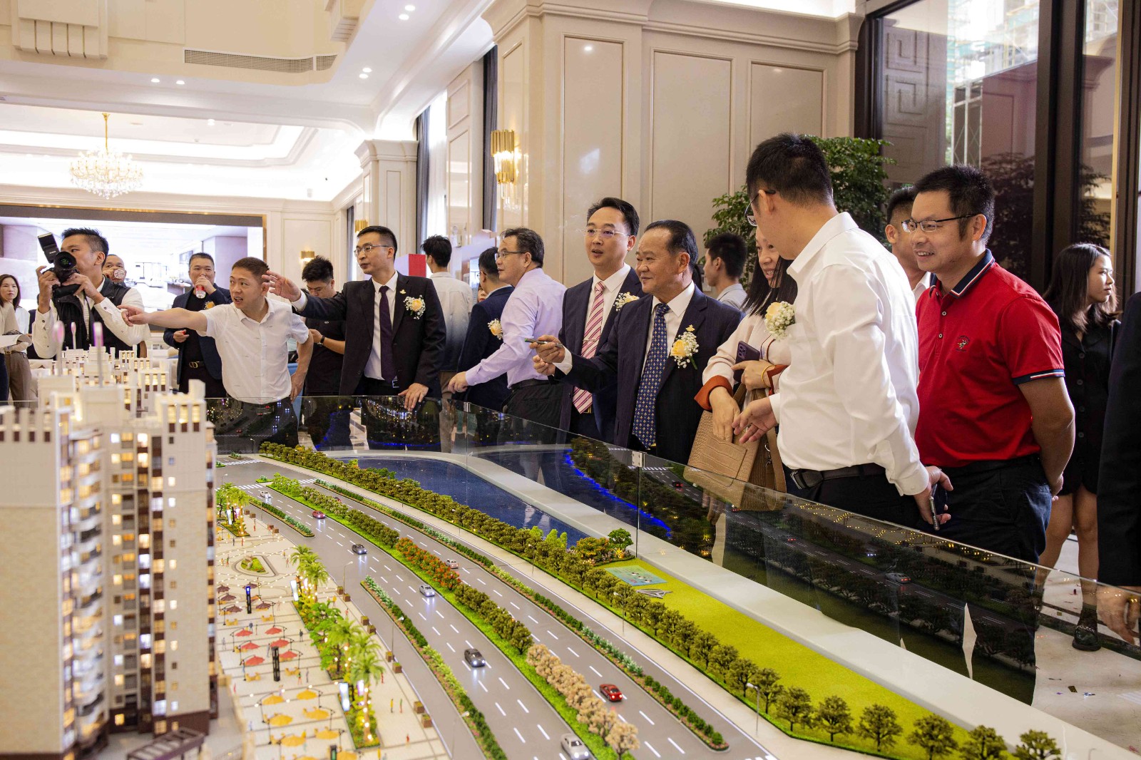 隨后,朱日楊董事長、朱榮業總裁、陳駿良副總裁、朱利昀副總裁兼財務總監、陳永輝常務副總經理、劉顯花副總經理,共同為霸王花˙東城國際項目營銷中心剪彩。